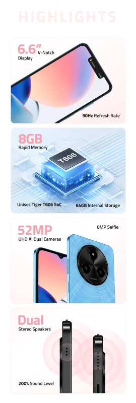 - Processor: Unisoc Tiger T606 SoC