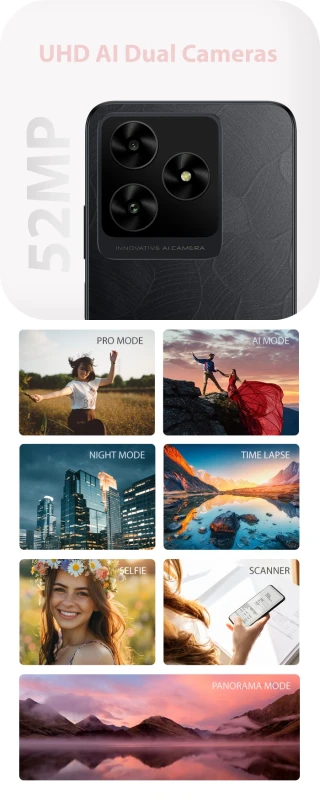 - Rear Camera: 52MP UHD AI Dual Cameras